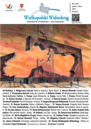Publikujemy 12 numer Wielkopolskiego Widnokręgu, kolejny, który ukaże się w wydaniu papierowym dzięki współpracy z Biblioteką Raczyńskich i uprzejmym zainteresowaniu Pani Dyrektor Katarzyny Kamińskiej. Był to szczególny rok dla naszego wydawnictwa, redakcji. Autorów i donatorów współpracujących nad jego publikacją od 5 lat. Po raz pierwszy efekt wspólnych działań jest dostępny w wersji tradycyjnej, pozwalającej na…